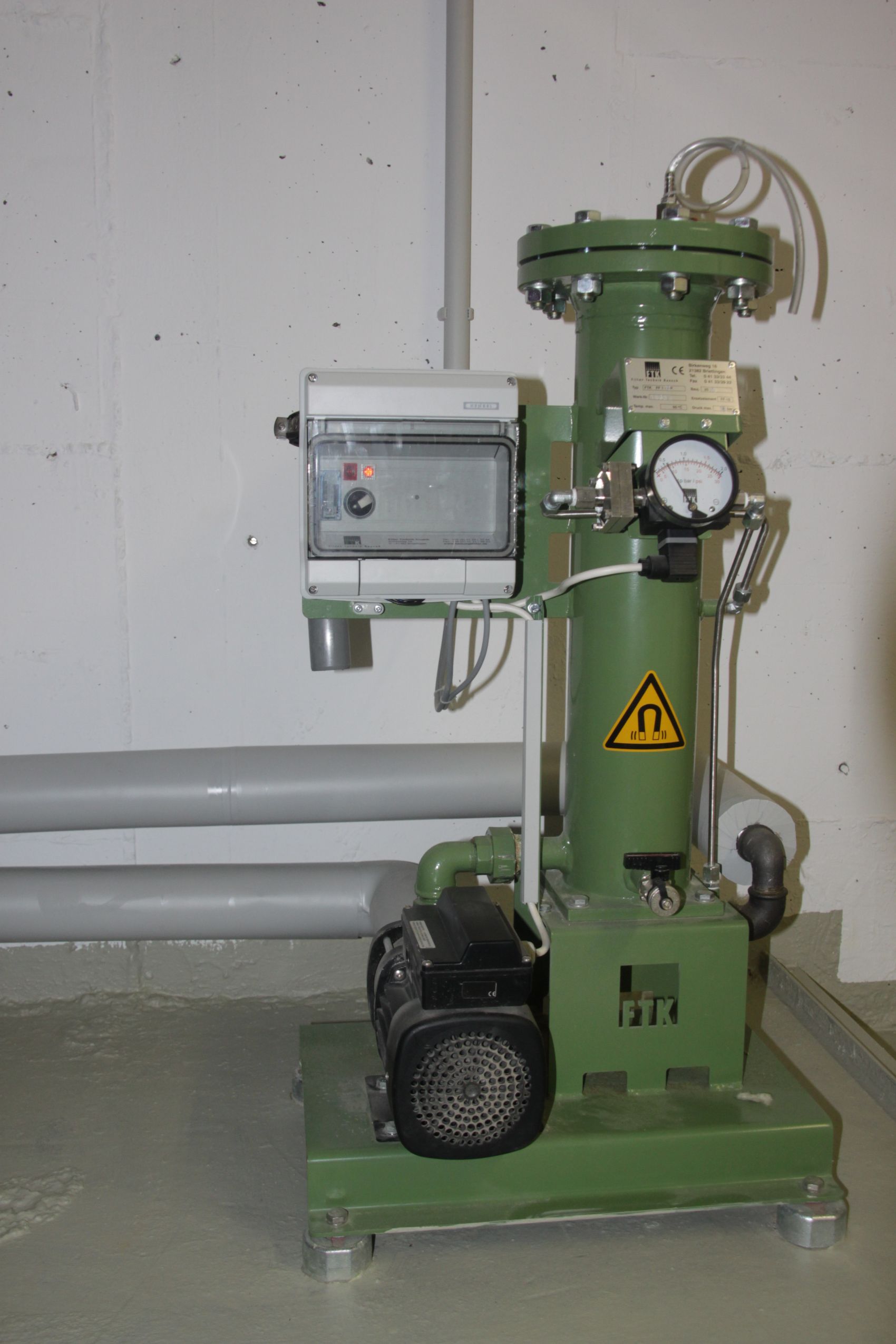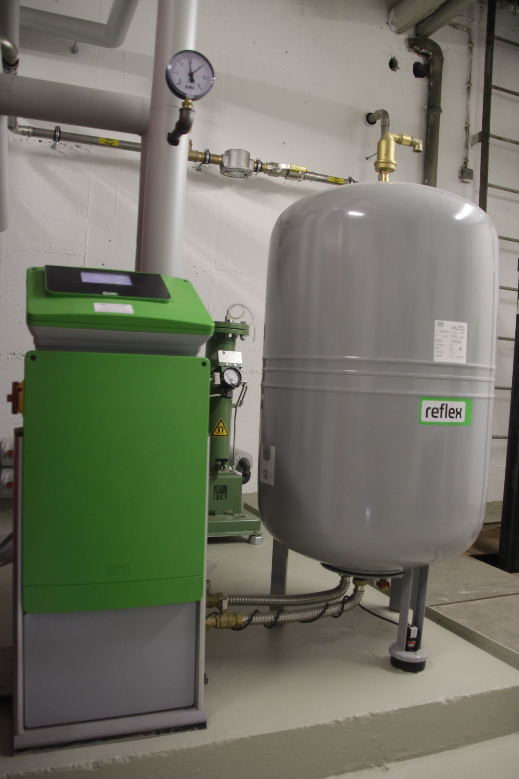 In einem großen Mehrfamilienhaus mit angeschlossenem Gewerbe im Raum München (Schwabing/Milbertshofen) wurde eine umfassende energetische Modernisierung der Heizzentrale realisiert, bei der die veraltete Gas-Heizwerttechnik durch einen hocheffizienten Gas-Brennwertkessel von Hoval ersetzt wurde, um die Versorgung der 50 Wohneinheiten zukunftssicher aufzustellen. Wie auf den Aufnahmen der Heizzentrale zu sehen ist, wurde dabei nicht nur das Wärmeerzeugungssystem getauscht, sondern die gesamte Anlagentechnik auf ein Maximum an Effizienz und Langlebigkeit optimiert. Ein besonderer Fokus lag auf der Wasserqualität und Systemstabilität: Durch die Installation einer Reflex Nachspeise-Entgasung und Druckhaltung sowie modernster Heizungsfiltertechnik mit Magneteinsatz der Firma FTK wird der gesamte Heizkreislauf effektiv vor Korrosion und Verschmutzung geschützt.