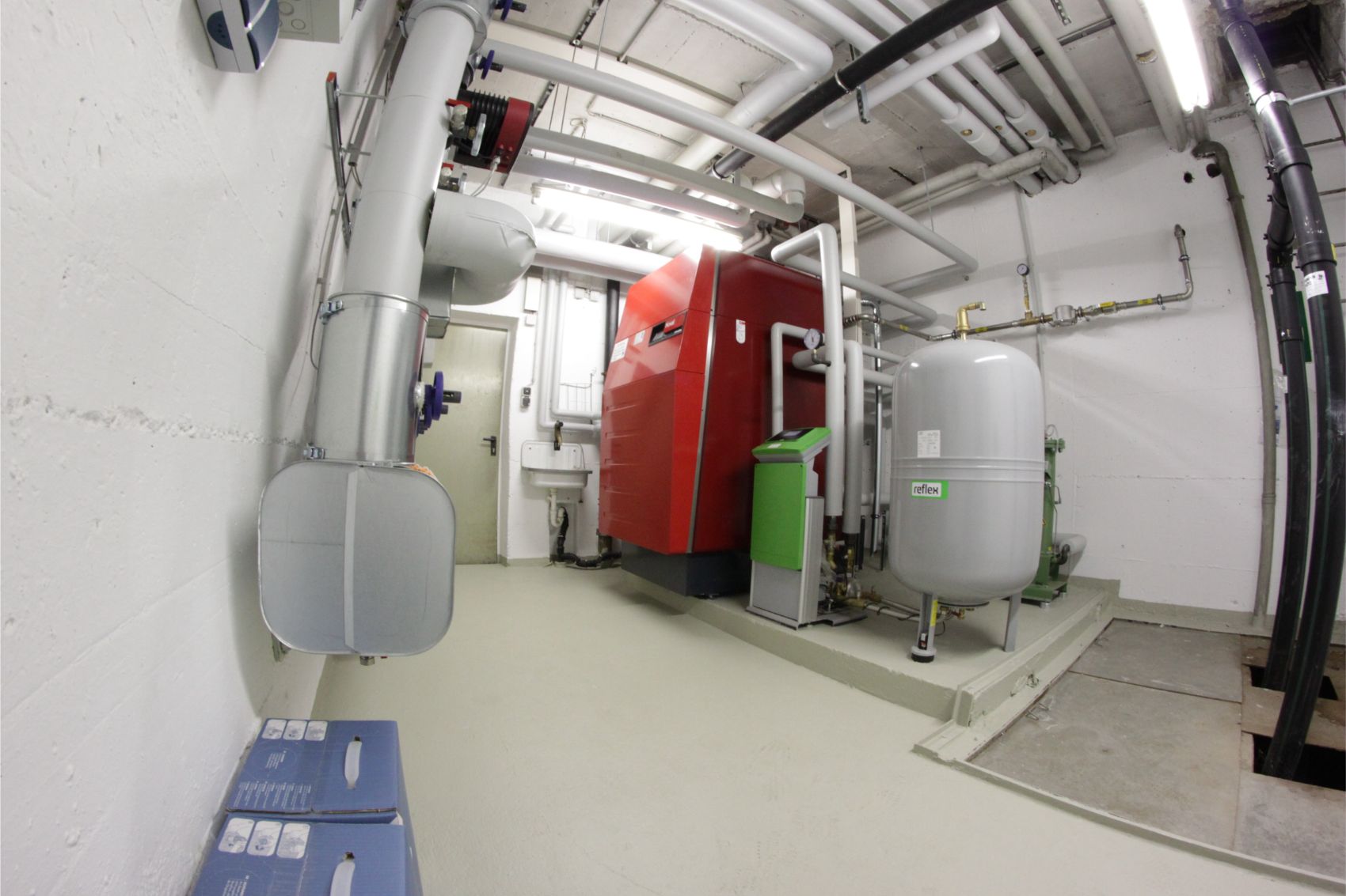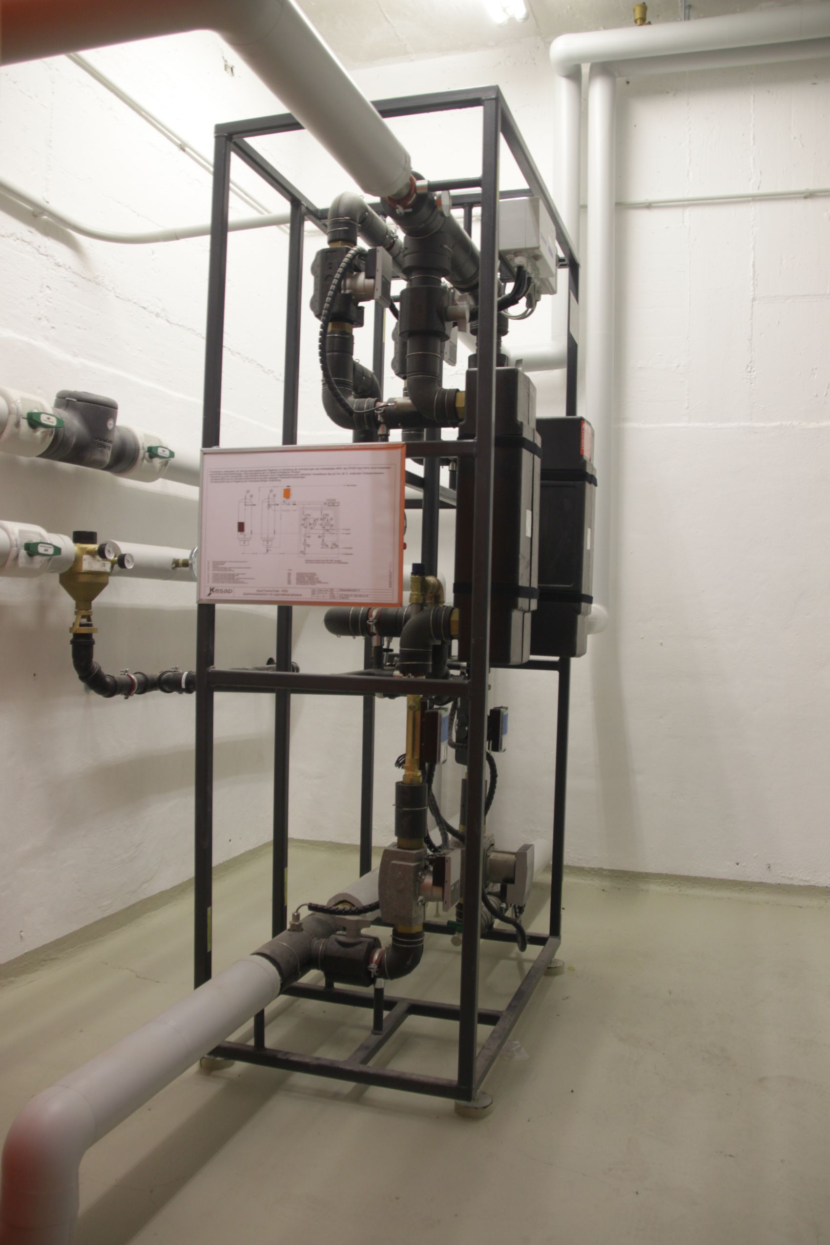 Neben der reinen Heizleistung wurde ein innovatives Konzept zur Warmwasserbereitung der Firma Kesap integriert, das durch ein spezielles Ladesystem und eine integrierte Kalkschutzanlage eine besonders legionellenarme und hygienische Trinkwasserversorgung sicherstellt. Um das System optimal auf die Verteilung im Gebäude abzustimmen, erfolgte ein hydraulischer Abgleich aller Heizkörper mittels Heimeier Eclipse Ventilen. Ein entscheidender strategischer Vorteil dieser Modernisierung in Schwabing ist zudem die bereits integrierte Vorrüstung für eine spätere Anbindung einer Luftwärmepumpe, was das System zu einer flexiblen Hybrid-Lösung für kommende Anforderungen macht. Die professionelle Ausführung der komplexen Verrohrung und die Einbindung der hochwertigen Komponenten garantieren einen störungsfreien Betrieb und signifikante Einsparungen bei den Energiekosten.