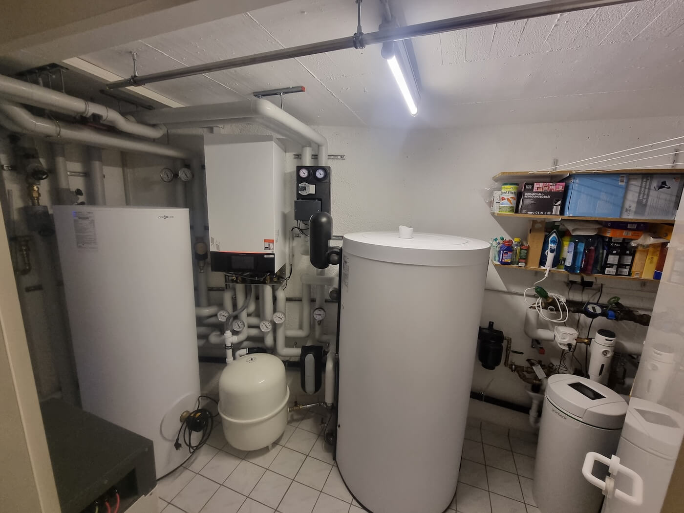 Im Rahmen einer umfassenden energetischen Modernisierung in München Perlach wurde ein Eigenheim von 1996 von einer alten Gasheizung auf eine hocheffiziente Luftwärmepumpe umgestellt. Trotz des bauseits vorhandenen Einrohrsystems konnten durch die gezielte Vergrößerung der Heizflächen die Vorlauftemperaturen auf maximale 38°c abgesenkt werden, was zu einem hervorragenden Jahresstromverbrauch von ca. 5.000 kWh führt. Ein intelligentes Energiekonzept bindet zudem die neue PV-Anlage samt Batteriespeicher und Elektroheizstäben ein, um Überschussstrom geregelt in den Warmwasser- und Heizungspufferspeicher zu leiten. Dank einer Wärmekaskade mit zwei Stromzählern profitiert der Kunde von günstigem Wärmestrom, wodurch die laufenden Kosten sogar unter dem Niveau der vorherigen Gasrechnung liegen.